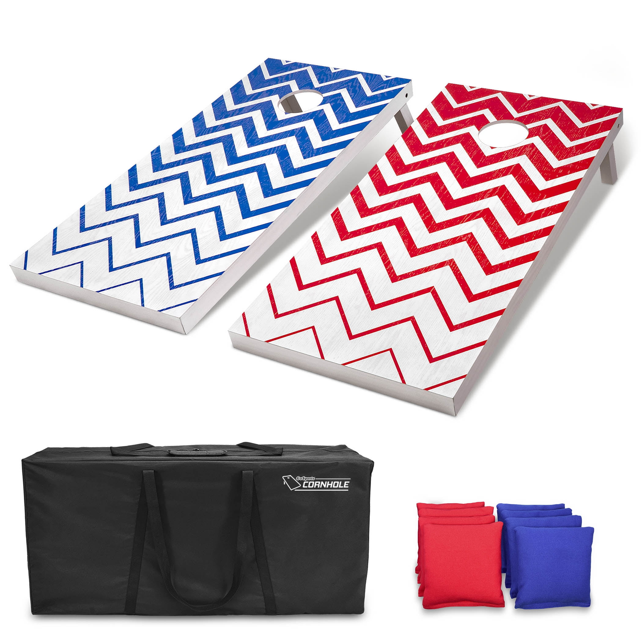 Gosports Red And Blue Chevron Pattern Regulation Size Wooden Cornhole Set Includes Two 4 X 2 Boards 8 Bean Bags Carrying Case And Game Rules Walmart Com